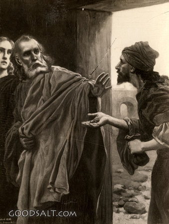 Peter Rebukes Simon at Samaria Acts 8 testament, history, church, ministry, peter, new, simon, philip, judea, samaria, acts, rebukes, William Fredericks, D00073 PROJECTION - License for PowerPoint™ PRINT – buy a print of this picture; optional frame Bible Hub |