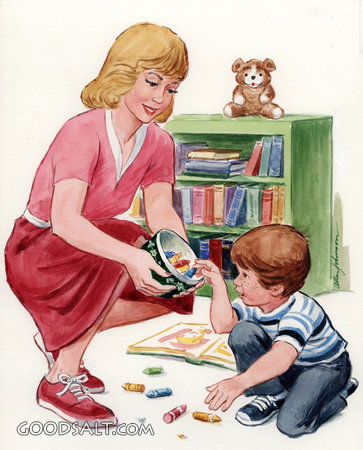 cleaning, picking, home, family, americana, crayons, Allen Johnson, 05154