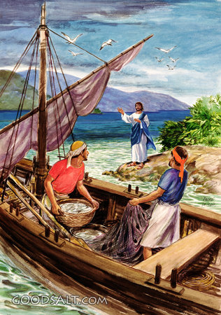 Jesus Chooses Helpers: James and John Matthew 4:18-22 Mark 1:16-20 follow, Jesus, testament, john, new, james, disciples, helpers, Calls, Chooses, Andre LeBlanc, 05551 PROJECTION - License for PowerPoint™ PRINT – buy a print of this picture; optional frame Bible Hub |
