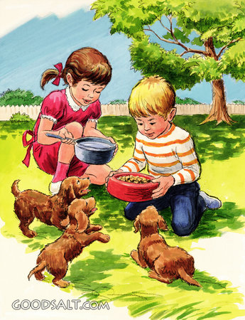 help, feeding, working, americana, children, animals, outdoors, Allen Johnson, 04110