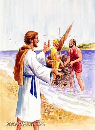 Jesus Calling Peter and Andrew Matthew 4:18-22 Mark 1:16-20 John 1:35-42 follow, calling, Jesus, testament, peter, new, andrew, disciples, Calls, Allen Johnson, 05482 PROJECTION - License for PowerPoint™ PRINT – buy a print of this picture; optional frame Bible Hub |