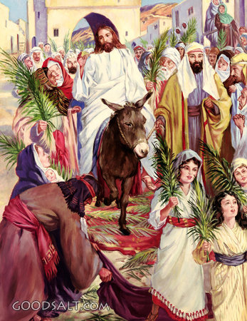 Jesus Rides Into Jerusalem Matthew 21:1-11 Mark 11:1-11 Luke 19:28-44 John 12:12-19 week, Jesus, testament, jerusalem, new, easter, passion, Enters, Rides, John E. Sutcliffe, 01168 PROJECTION - License for PowerPoint™ PRINT – buy a print of this picture; optional frame Bible Hub |