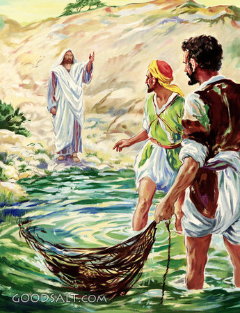 Jesus Calls Andrew & Peter Matthew 4:18-22 Mark 1:16-20 John 1:35-42 follow, Jesus, testament, peter, new, andrew, disciples, Henry Coller, Calls, 01414 PROJECTION - License for PowerPoint™ PRINT – buy a print of this picture; optional frame Bible Hub |