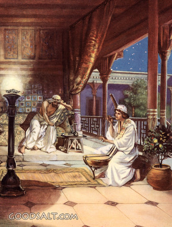 playing, testament, old, samuel, saul, kingdom, united, david, kings, plays, William Brassey Hole, 01116A