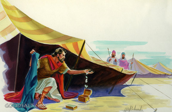 Messenger Finds Achan's Hidden Spoils Joshua 7 hidden, testament, battle, messenger, old, ruth, conquest, joshua, Achan, Finds, H. O. Richards, Spoils, 08034 PROJECTION - License for PowerPoint™ PRINT – buy a print of this picture; optional frame Bible Hub |