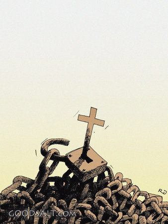 A Cross Unlocking a Lock With Chains.