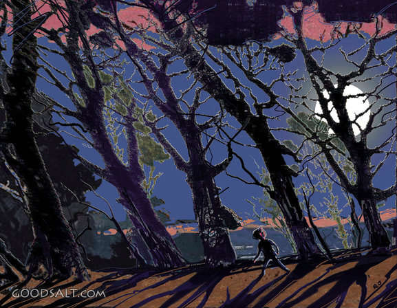 Person Walking Alone in Dark With Scary Shadows Psalm 23:4 symbolism, walk, darkness, ominous, moonlight, moon, lane, spooky, shadow, fear, afraid, scared, alone, path, tree, guide, fearful, night, road, sketch, moonlit, forest, lonely PROJECTION - License for PowerPoint™ PRINT – buy a print of this picture; optional frame Bible Hub |