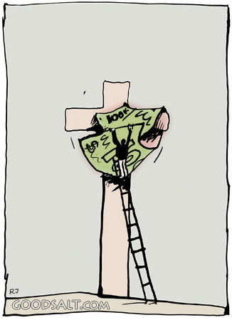symbolism, climb, symbol, blood, money, ladder, cross, editorial, cartoon, blood money