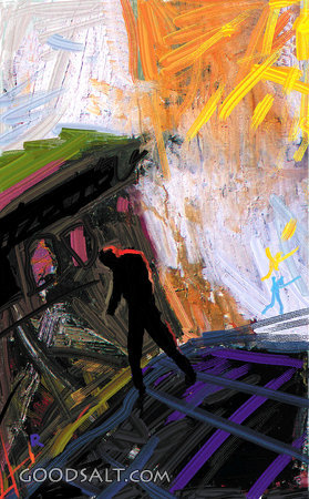 Figure Walks Alone With Head Down Psalm 23:4 conceptual, dramatic, figure, solitary, drama, symbol, shadow, alone, street, building, oil, editorial, concept, sketch, gesture, solitaire, lonely PROJECTION - License for PowerPoint™ PRINT – buy a print of this picture; optional frame Bible Hub |