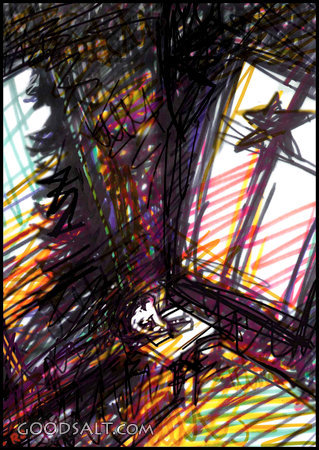 conceptual, study, read, drawing, line, guidance, alone, ink, editorial, concept, room, scripture, window, art