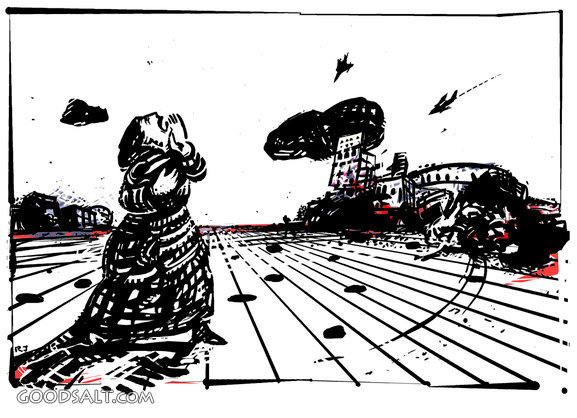 Woman Cries at the Sight of Destruction Luke 23:28 symbolism, city, lost, pain, sadness, crying, modern, destroy, flying, scream, screaming, drop, black, drawing, lose, destroying, fulfill, board, plane, airplane, contemporary, line, destroyed, loss, white, trouble, world, symbol, blood, person, sad, cry, destruction, end, war, flight, plead, death, prophecy, ink, of, bomb, fly, scratch board, editorial, despair, bombing, scratch, losing, dropping, hurting, painful, pained, fulfillment, evil, end time PROJECTION - License for PowerPoint™ PRINT – buy a print of this picture; optional frame Bible Hub |