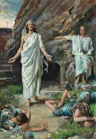 Resurrection of Christ Acts 2:32 Romans 8:11 Matthew 27:63 Matthew 27:63 Matthew 28:1-8 angel, messiah, calvary, empty, christ, Jesus, stone, hillside, morning, tomb, soldier, roman, resurrected, cross, alive, grave, garden, sunday, open, resurrection, easter, art, soldiers, images, son of god, harry anderson, Pictures, first day, struck down, pics PROJECTION - License for PowerPoint™ PRINT – buy a print of this picture; optional frame Bible Hub |
