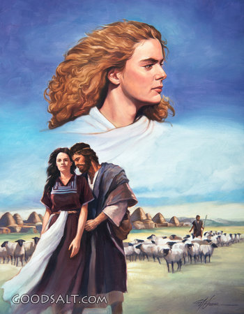 Rachel, a Love Story Genesis 29:9-35 sky, two, meeting, story, side, graze, grazing, woman, man, women, shepherd, sheep, blue, hair, romance, romantic, red, village, flock, jacob, embrace, rachel, love, blond, intimate, leah, dark haired, a love story, rhpas0055 PROJECTION - License for PowerPoint™ PRINT – buy a print of this picture; optional frame Bible Hub |