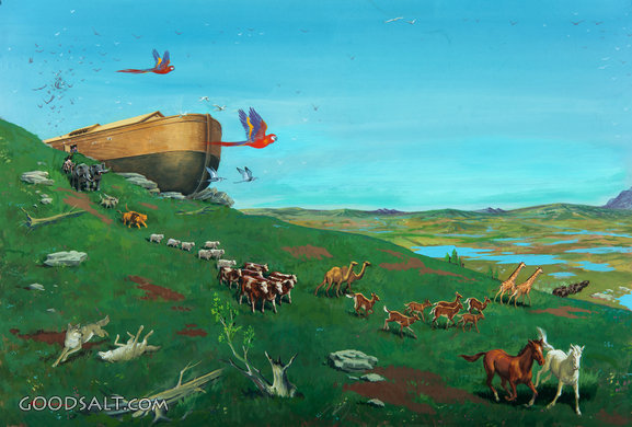 leave, leaving, dry, great, animal, boat, ark, flood, exit, land, noah, animals, noah's ark, rhpas0068