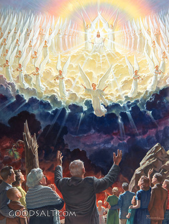 Behold He Cometh Isaiah 25:9 people, modern, christ, Jesus, rejoice, rejoicing, background, rainbow, facing, second, glory, throne, of, wilderness, resurrection, clouds, arms, angels, clyde provonsha, second coming, last days, bible readings, behold he cometh, rhpas0073, upheld PROJECTION - License for PowerPoint™ PRINT – buy a print of this picture; optional frame Bible Hub |