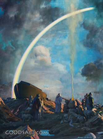 Rainbow Promise Genesis 8:20-21 Genesis 9:2-17 people, salvation, leave, sky, ground, dry, saved, mountain, top, rainbow, promise, sheep, smoke, ark, altar, fire, flood, family, covenant, sacrifice, offering, noah, burnt, animals, clouds, rocks, heavens, rainbow promise, harry anderson, old testament, eight, rhpas0096 PROJECTION - License for PowerPoint™ PRINT – buy a print of this picture; optional frame Bible Hub |
