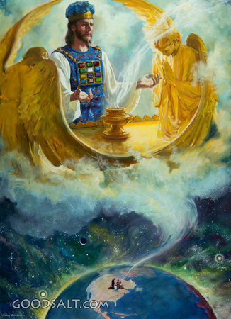 Heavenly Priest Hebrews 4:14 Hebrews 4:15 Psalm 110:4 Hebrews 5:6 Hebrews 6:20 Hebrews 7:15 Hebrews 7:11 Hebrews 7:26 Hebrews 7:25 Hebrews 9:24 Zechariah 6:13 1 Kings 8:6 1 Timothy 6:16 atonement, america, christ, Jesus, heavenward, heavenly, earth, space, world, smoke, priest, heaven, ark, holy, sanctuary, high, incense, family, gold, golden, covenant, tabernacle, clouds, prayers, angels, cherubim, high priest, harry anderson, united states, of the, mercy seat, holy of holies, holy of hollies, heavenly priest PROJECTION - License for PowerPoint™ PRINT – buy a print of this picture; optional frame Bible Hub |
