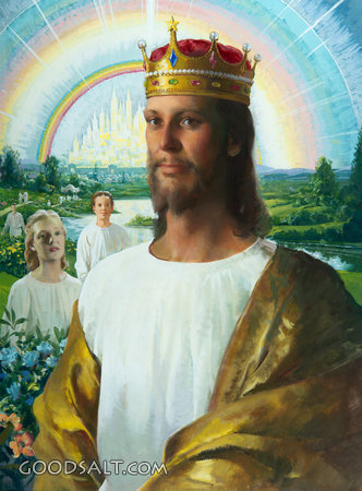 King of Kings Revelation 19:16 Isaiah 9:6 Isaiah 11:10 Acts 2:30 1 Timothy 6:15 Revelation 17:14 lord, people, creation, christ, Jesus, saved, redeemed, shawl, peace, royal, rainbow, robe, crown, heaven, new, king, cloak, paradise, golden, new earth, new jerusalem, harry anderson, lord of lords, king of kings, saints, magesty, rhpas0124 PROJECTION - License for PowerPoint™ PRINT – buy a print of this picture; optional frame Bible Hub |
