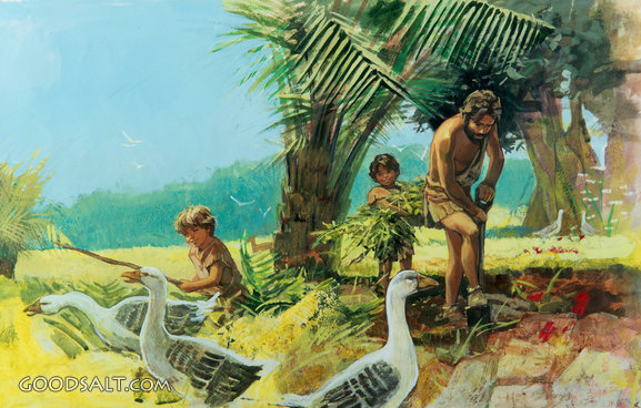 The Beginning, Working the Earth - Adam, Cain and Abel Genesis 4:1-4 growing, creation, gardening, digging, work, working, laboring, labor, geese, herding, earth, adam, cain, garden, dig, till, tilling, dirt, eden, boys, sons, able, review, palms, Review and Herald, short sleeved, realism, rhpas0132, he beginning, working the earth - adam, cain and abel PROJECTION - License for PowerPoint™ PRINT – buy a print of this picture; optional frame Bible Hub |