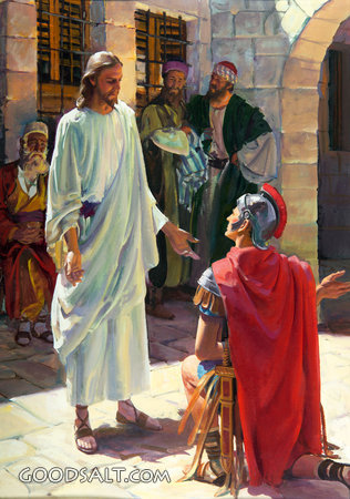 Healing Centurion's Son Matthew 8:13 Matthew 8:8 John 4:43-54 standing, Jesus, kneeling, talking, cana, miracle, officer, arch, distance, power, military, leader, sunlit, men, shadow, street, faith, centurion, soldier, roman, galilee, son, word, servant, gentile, miracles, review, harry anderson, heals, Believes, Review and Herald, afjs277centurion001cha, k-1144, jesus heals the centurion's son, sun light, rhpas0152, healing centurion's son PROJECTION - License for PowerPoint™ PRINT – buy a print of this picture; optional frame Bible Hub |