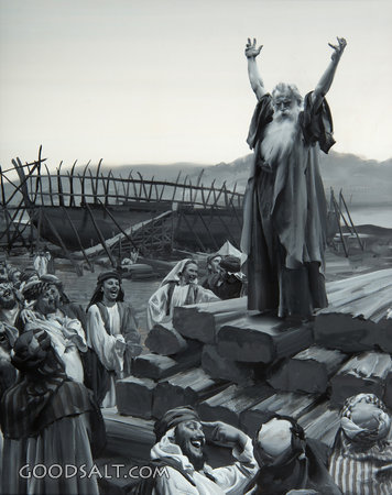 Warning of a Coming Deluge 1 Peter 3:20 Hebrews 11:7 Genesis 6:11-22 Genesis 7:4 dramatic, warn, disaster, preaching, preach, hurtful, gathered, warning, coming, ark, crowd, mock, mocking, building, sermon, prophet, flood, reject, gesture, doom, rejecting, unbelief, message, noah, disbelief, black and white, harry anderson, gestures, Lumber, impending, disbelieve, rhpas0156, warning of a coming deluge PROJECTION - License for PowerPoint™ PRINT – buy a print of this picture; optional frame Bible Hub |