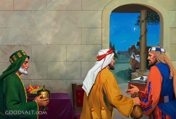 The Wise Men Matthew 2:1-12 Matthew 2:11 Daniel 9:24-27 Numbers 24:17 Matthew 2:10 story, east, royal, three, house, incense, persian, star, bearing, gold, bethlehem, judea, from, magi, christmas, frankincense, myrrh, kings, gifts, treasures, review, wise men, baby jesus, prophecies, Orient, Review and Herald, birth of christ, star of bethlehem, part of series, bible story, robert berran, mbf, my bible friends, camb_v.1p42-43wisemen001crb, prophecies fulfilled, gaspar, melchior, baltasar, part of a series a series, birth of jesus of jesus PROJECTION - License for PowerPoint™ PRINT – buy a print of this picture; optional frame Bible Hub |