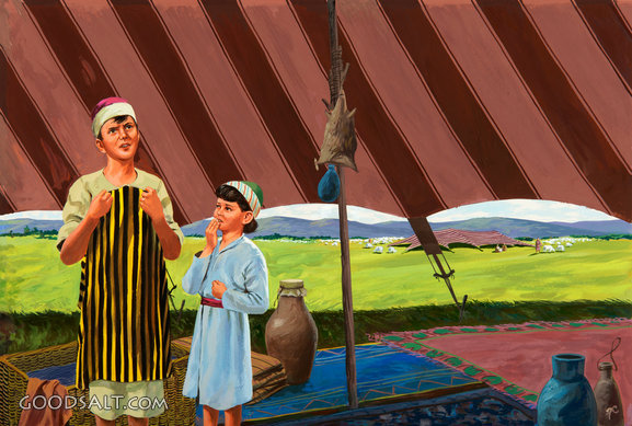 Joseph and Benjamin - the Coat Is Too Small Genesis 37:1 tent, pasture, coat, joseph, sheep, benjamin, canaan, brothers, shepherds, herdsmen, review, nomadic, outgrown, Review and Herald, part of series, part of a series, joseph and benjamin, rhpas0192, the coat is too small, too small, rugs PROJECTION - License for PowerPoint™ PRINT – buy a print of this picture; optional frame Bible Hub |