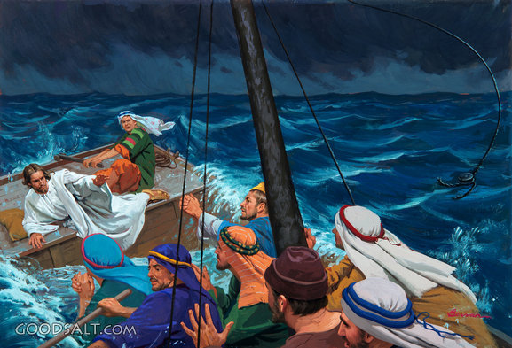 Jesus and the Storm Luke 8:23-24 dark, Jesus, wind, blowing, flooding, danger, sea, fear, afraid, storm, boat, stormy, blue, night, frightened, fishermen, waves, disciples, review, Review and Herald, wake up, part of series, part of a series, gale, swamped, taking on water, danger of sinking, rhpas0219, jesus and the storm PROJECTION - License for PowerPoint™ PRINT – buy a print of this picture; optional frame Bible Hub |