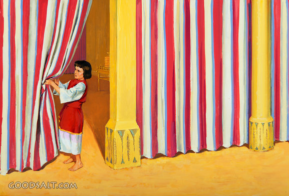 The Boy Samuel Opens the Curtains of the Tabernacle 1 Samuel 1:18 yellow, striped, opening, white, service, boy, samuel, temple, holy, sanctuary, open, young, gold, red, curtain, tabernacle, review, part of a series, rhpas0244, the boy samuel opens the curtains of the tabernacle PROJECTION - License for PowerPoint™ PRINT – buy a print of this picture; optional frame Bible Hub |