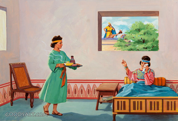Naaman's Wife and Servant 2 Kings 5:2 2 Kings 5:3 inside, interior, girl, sad, naaman, bed, bedroom, room, young, syrian, leprosy, servant, review, little maid, servant girl, part of a series, israeli, story of naaman PROJECTION - License for PowerPoint™ PRINT – buy a print of this picture; optional frame Bible Hub |