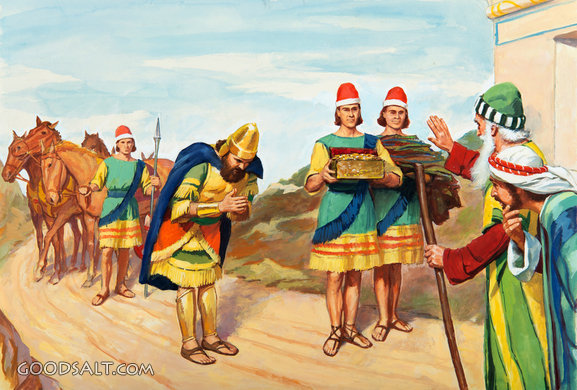 Naaman Tries to Pay Elisha 2 Kings 5:15-16 cure, elisha, naaman, prophet, greed, servant, payment, gifts, Gehazi, review, part of a series, my bible friends, story of naaman, rhpas0284, naaman tries to pay elisha, declines PROJECTION - License for PowerPoint™ PRINT – buy a print of this picture; optional frame Bible Hub |