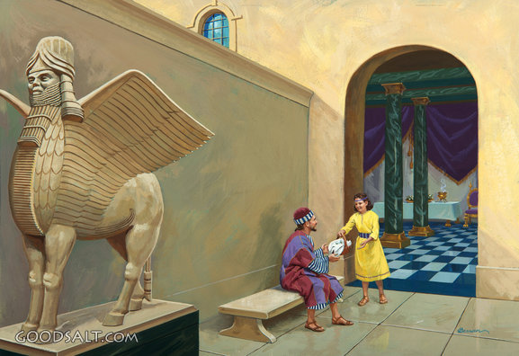 Esther Takes Lunch to Mordecai Esther 2:7 mordecai, palace, esther, Persia, review, part of a series, robert berran, mbf, my bible friends, camb_v.4p38-39gate001crb, story of esther, rhpas0346, esther takes lunch to mordecai, sack lunch PROJECTION - License for PowerPoint™ PRINT – buy a print of this picture; optional frame Bible Hub |