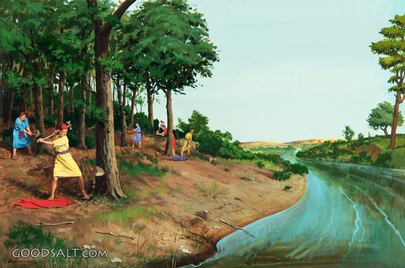 river, elisha, trees, students, chopping, rebuilding the walls, rhpas0375