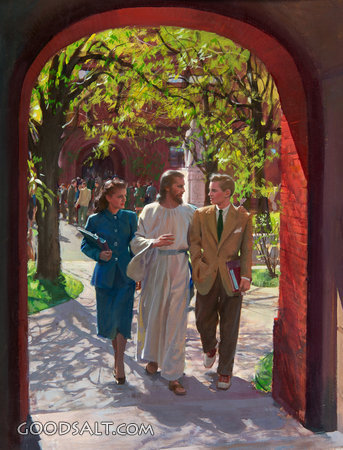 Christ on the Campus Matthew 11:28-29 holding, entrance, christ, Jesus, woman, man, walking, books, university, walks, harry anderson, students, campus, walked, counseling, rhpas0493 PROJECTION - License for PowerPoint™ PRINT – buy a print of this picture; optional frame Bible Hub |