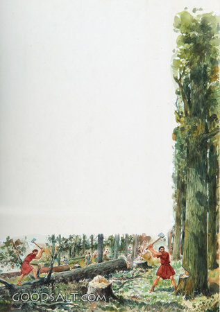 Noah's Ark - Cutting Trees Genesis 6:14 Genesis 6:15 Genesis 7:5 Genesis 5:32 build, built, axe, cut, cutting, laboring, labor, ark, log, ham, japheth, shem, trees, workers, logs, sons, noah's, watercolor, gopherwood, chop, chopping, rhpas0560, axes, chopped PROJECTION - License for PowerPoint™ PRINT – buy a print of this picture; optional frame Bible Hub |