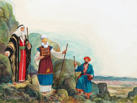 Moses and Aaron on the Mountain Exodus 17:10 Exodus 17:9-11 standing, hill, hillside, mountain, lookout, priest, staff, watching, watch, valley, joshua, moses, hur, aaron, wilderness, mount, rod, camp, on, high priest, watches, costumes, rhpas0593, overview, sinaii PROJECTION - License for PowerPoint™ PRINT – buy a print of this picture; optional frame Bible Hub |