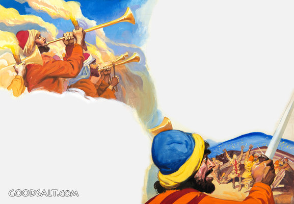 Gideon's Mighty Men Joshua 6:10 Judges 7:16-22 small, attack, men, surprise, war, time, mighty, flee, night, fleeing, obey, gideon, army, frighten, camp, sword, soldiers, Midian, swords, torches, trumpets, 300 men, three hundred, rhpas0601, yells PROJECTION - License for PowerPoint™ PRINT – buy a print of this picture; optional frame Bible Hub |