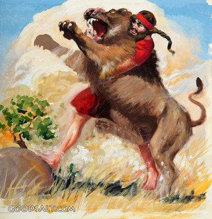 Samson and the Lion Judges 14:5 way, might, bare, older, fight, fighting, strong, kill, strength, smoke, spirit, lion, mighty, fire, wrestle, samson, killed, lord's, hands, and, victor, slay, Fights, Kills, attacked, rhpas0603, attacks, slays, wresled PROJECTION - License for PowerPoint™ PRINT – buy a print of this picture; optional frame Bible Hub |