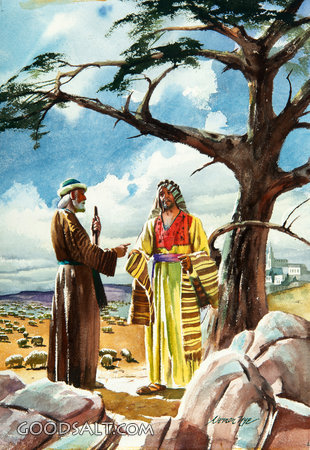 Separating the Garment Genesis 14:19 Proverbs 18:18 1 Kings 11:29-32 1 Kings 11:34-38 standing, garment, rip, coat, jerusalem, tree, Jeroboam, Ahijah, Meets, vernon nye, separating the garment, rhpas0632, met, rips, face to face PROJECTION - License for PowerPoint™ PRINT – buy a print of this picture; optional frame Bible Hub |
