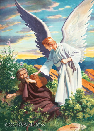 Elijah Runs Away From Ahab and Jezebel 1 Kings 19:1-9 angel, down, asleep, water, shade, lying, large, bending, fell, elijah, food, bush, up, wake, waking, brought, rhpas0644, prophet's, bends PROJECTION - License for PowerPoint™ PRINT – buy a print of this picture; optional frame Bible Hub |