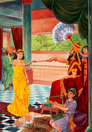 King Xerxes Holds Out Golden Scepter Esther 2:16-18 Esther 4:10-11 Esther 5:1-6 Esther 5:2 favor, audience, chamber, royal, king, throne, persian, queen, beautiful, fan, room, seated, golden, before, court, ahasuerus, esther, Medes, throne room, Harpist, medes and persians, king xerxes, esther and the king, persian king, herbert rudeen, the bible story, queen ester, golden scepter, 06146, chambers, throneroom, septer, king xerxes holds out golden scepter, rhpas0696, long-handle PROJECTION - License for PowerPoint™ PRINT – buy a print of this picture; optional frame Bible Hub |