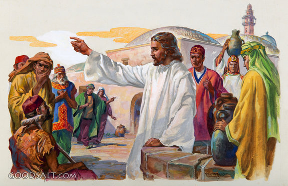 Jesus Teaching at the Well Luke 4:14-15 Luke 4:22 Luke 4:32 pointing, people, Jesus, teaching, well, disciples, the bible story, william heaslip, rhpas0725 PROJECTION - License for PowerPoint™ PRINT – buy a print of this picture; optional frame Bible Hub |