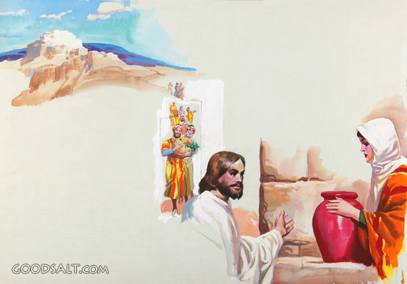 Jesus Speaks to Woman at the Well John 4:13-14 John 4:25-30 many, people, running, Jesus, outstretched, large, woman, coming, ministry, meet, well, arm, jar, to, at, woman at the well, kreigh collins, rana, rhpas0728 PROJECTION - License for PowerPoint™ PRINT – buy a print of this picture; optional frame Bible Hub |