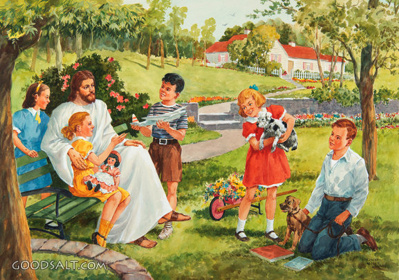 Jesus Is the Friend of Children (Modern) Matthew 19:14 Mark 10:14 walkway, play, holding, playing, bench, park, talk, talking, conversation, contemporary, grass, sidewalk, girl, boy, house, home, friend, group, sitting, sit, dog, children, on, trees, boys, girls, dogs, retro, knees, Toys, jesus is the friend of children, rhpas0742 PROJECTION - License for PowerPoint™ PRINT – buy a print of this picture; optional frame Bible Hub |