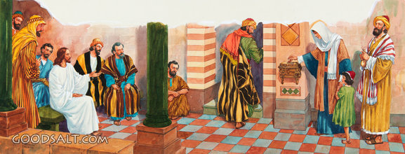 The Widow's Offering and the Pharisees' Offerings Mark 12:44 Luke 21:2-4 two, Jesus, mite, tithe, child, men, widow, temple, mother, sit, offering, coins, columns, sits, offerings, Floors, widow's mite, herbert rudeen, the bible story, rhpas0772, tiled PROJECTION - License for PowerPoint™ PRINT – buy a print of this picture; optional frame Bible Hub |