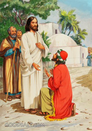 Rich Young Ruler and Jesus Matthew 19:16-26 Luke 18:18-23 down, standing, Jesus, kneeling, teaching, rich, looking, man, ruler, up, outdoors, questions, answers, teaches, steps, rich young ruler, kneels, Looks, Stands, the bible story, william hutchinson, rhpas0788 PROJECTION - License for PowerPoint™ PRINT – buy a print of this picture; optional frame Bible Hub |