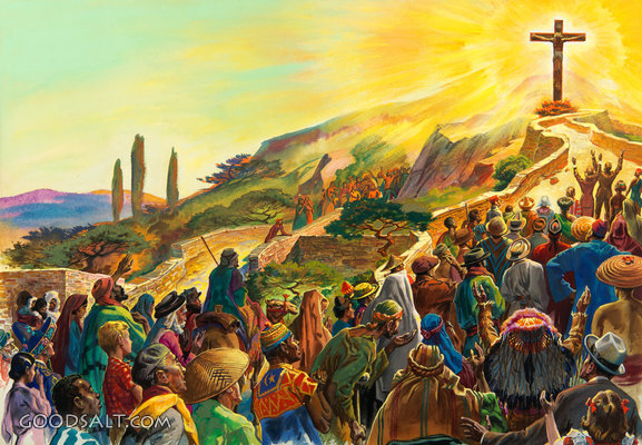 Vision Jesus Saw of Nations Viewing Jesus on Cross John 3:14 John 12:21-32 people, calvary, christ, Jesus, stone, distant, wall, cross, of, all, from, crucifixion, nations, multitudes, races, costumes, the bible story, william heaslip, rhpas0797 PROJECTION - License for PowerPoint™ PRINT – buy a print of this picture; optional frame Bible Hub |