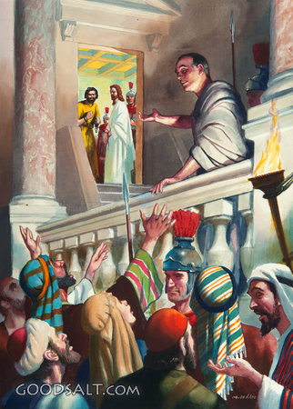 Pilate Gives the Jews a Choice Matthew 27:17 Matthew 27:15-26 pointing, dress, christ, Jesus, choice, covering, head, trial, crowd, shouting, shout, pilate, guard, barabbas, hands, arms, Jews, pontius pilate, the bible story, manning de v. lee, balcony, toward, rhpas 0803, streetched up PROJECTION - License for PowerPoint™ PRINT – buy a print of this picture; optional frame Bible Hub |
