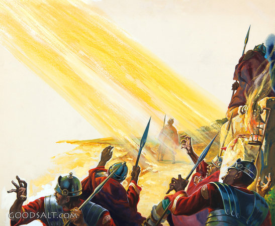 Christ's Resurrection, Angel and Soldiers Matthew 28:2-4 Matthew 28:11-15 angel, falling, ground, Jesus, large, rock, beam, earth, tomb, fear, heaven, soldier, roman, light, shining, earthquake, from, resurrection, easter, passion, on, to, soldiers, spears, uniforms, rhpas0818 PROJECTION - License for PowerPoint™ PRINT – buy a print of this picture; optional frame Bible Hub |