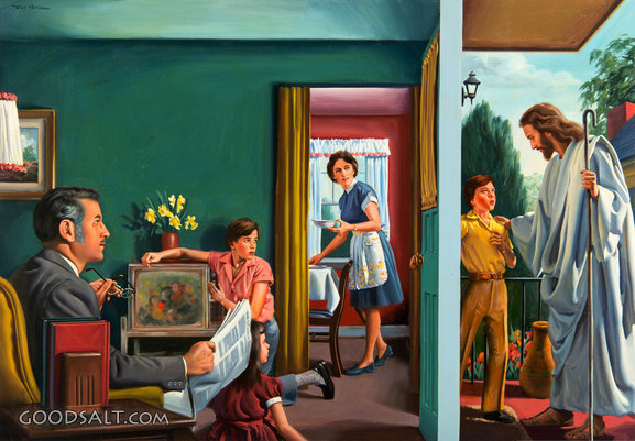 Jesus Is Knocking at Our Doors Hebrews 13:1-2 Revelation 3:20 stuffed, father, christ, Jesus, reading, shoulder, table, setting, top, boy, hand, door, of, across, visit, family, mother, sitting, younger, arm, tv, chair, on, the, is, in, sits, at, beside, jesus', boy's, rhpas0871, russell harlan, kneeliing PROJECTION - License for PowerPoint™ PRINT – buy a print of this picture; optional frame Bible Hub |